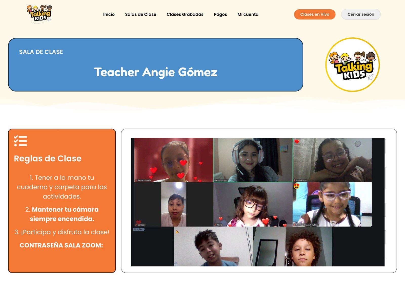 Nuestra plataforma brinda un entorno de aprendizaje seguro y estructurado, con acceso a salas virtuales privadas según el nivel del niño. Además, cuenta con clases grabadas y cursos en línea disponibles 24/7 para reforzar el aprendizaje y explorar cursos en línea diseñados para potenciar el aprendizaje en casa.